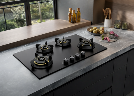 Elica FLEXI HEXA 370 LOTUS IND HD 3 Brass Burners Toughened Glass Auto Ignition Round Metalic knobs