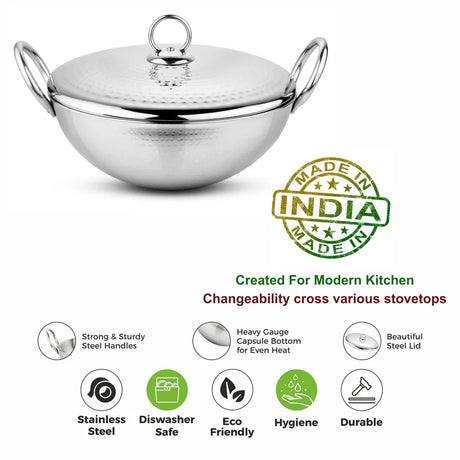 Magnum Capsule Bottom Hammered Kadhai With Lid – 1.3L, 20cm