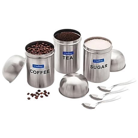 Tea Coffee Sugar Storage Container Canister With Spoons, 3 pcs