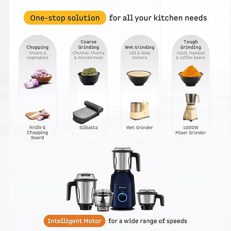 Yulia 750 Watt Mixer Grinder (Ritz Blue)