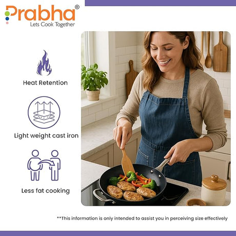 Black Eisen Cast Iron Kadhai With Steel Handle 4.2L, 30cm