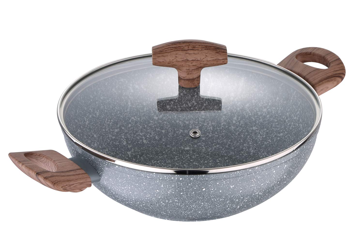 Bergner Alpine Forged Aluminium Cookware Set, ( Frypan - 24cm, Kadai - 24cm, Tawa - 25cm, Lid - 24cm) Induction Base. Grey.