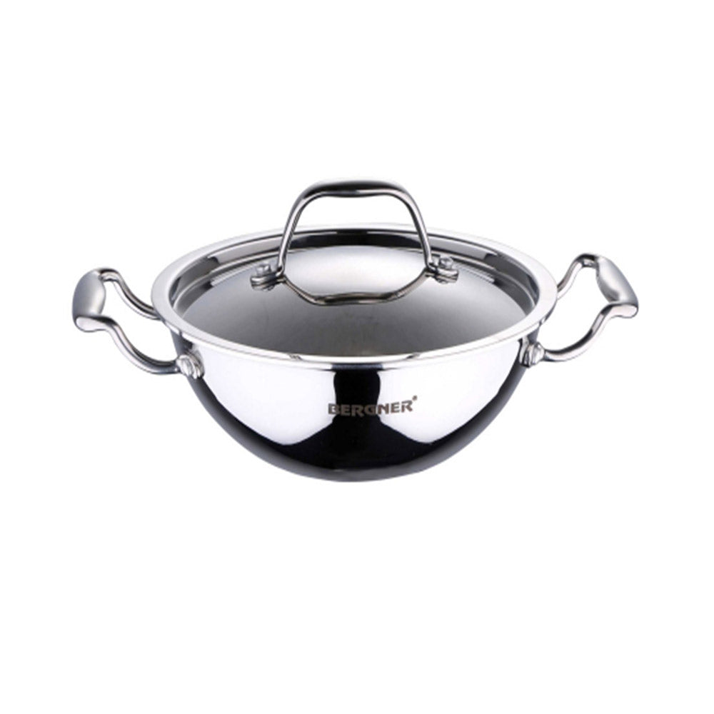 BERGNER ARGENT TRIPLY STAINLESS STEEL KADAI WITH LID 32 CM (BG-9951)