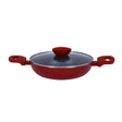 - Press aluminium, induction bottom, glass lid, 3.00 mm thickness, with dura granite coating, soft touch handles, exterior in red colour, handle colour matching body exterior red colour