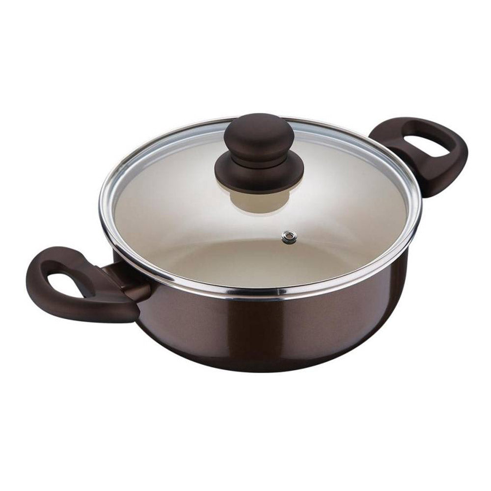 Cera + Ceramic Coating. Healthy Cooking.Eco Friendly. PFOA & PTFE Free. See through Glass Lid.Corrosion Resistant. Aesthetic Design. Soft Touch Handle for perfect grip. Energy Saving. Quick Heat Distribution.Light Weight.
