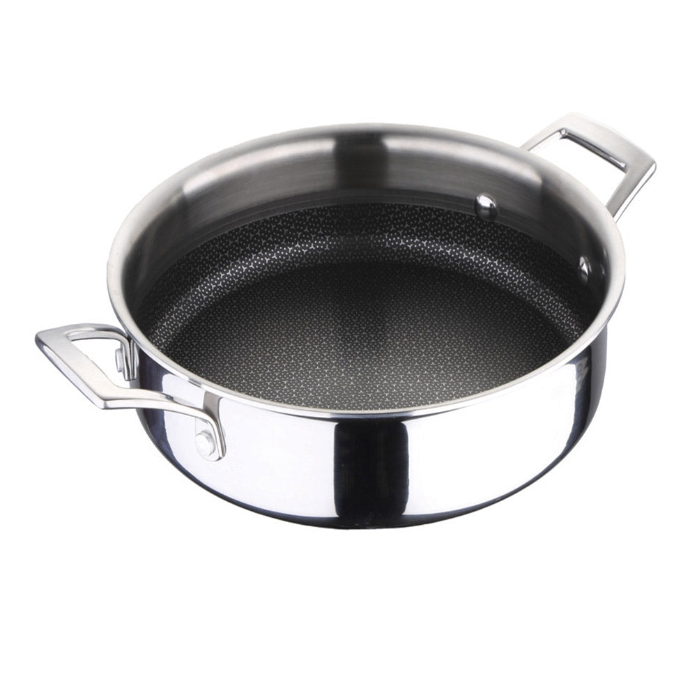 - The honeycomb pattern with a raised structure makes the non-stick layer intact for a longer period. It has extreme scratch resistance hence it is safe to use with metal spoons.