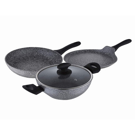 Bergner Granito Mineralia Forged Aluminium Non Stick Cookware Set 4 Pcs - BG-30165 (Grey)