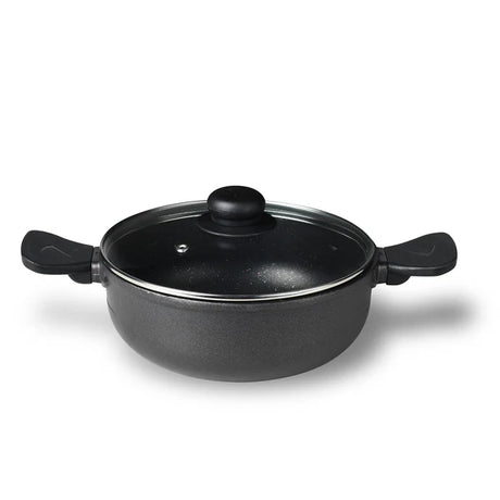 Bellini Plus Aura 5-Layer Non-Stick Kadai with Glass Lid, 28cm/5.2L, Induction Bottom-BGIN-31267-BK