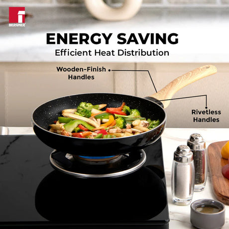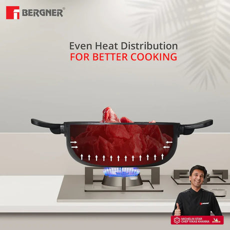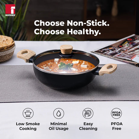Bellini Plus Aura 5-Layer Non-Stick Kadai with Glass Lid, 20cm/2.3L, Induction Bottom-BGIN-31263-BK