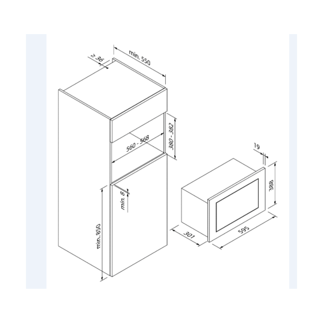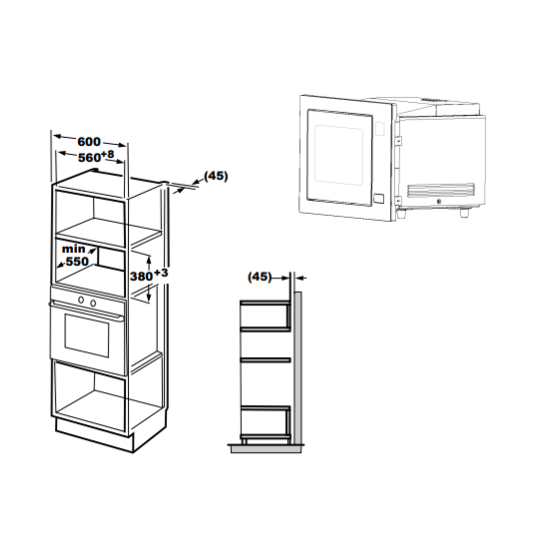 - Installation dimensions: 38.0 x 56.0 x 55.0 cm