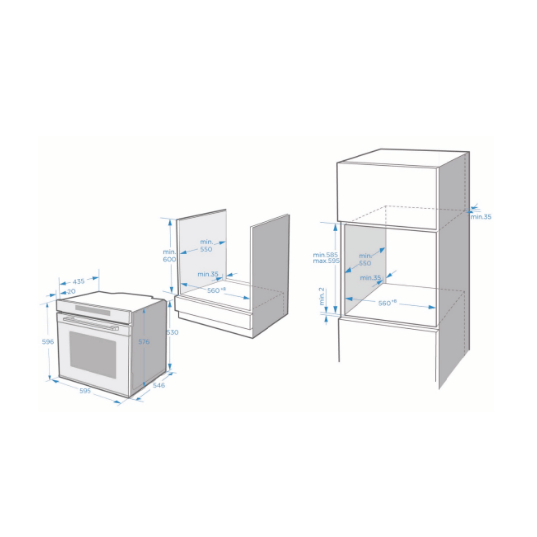- Appliance dimensions: 59.5 59.5 56.5 Cm
