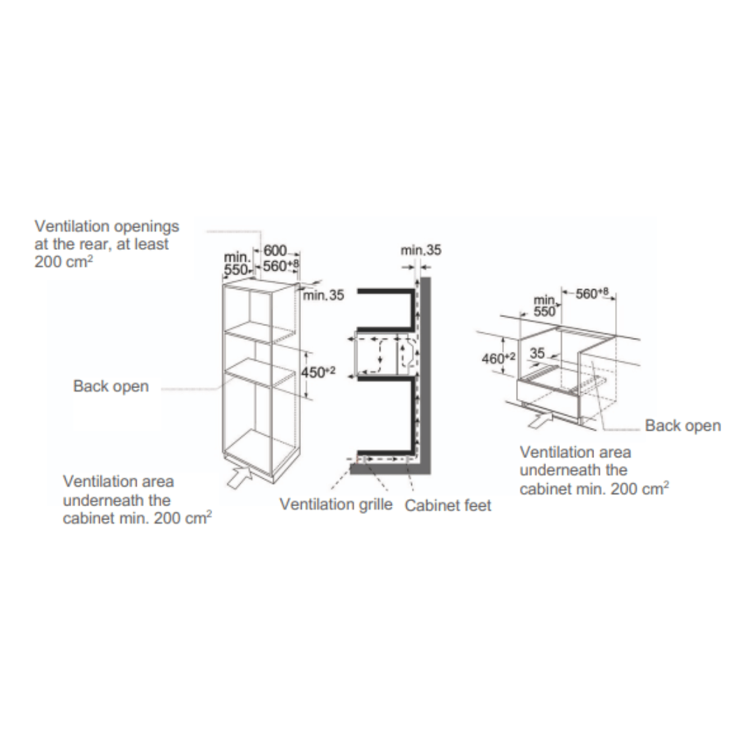 - Appliance dimensions: 45.4 59.5 56.8 Cm