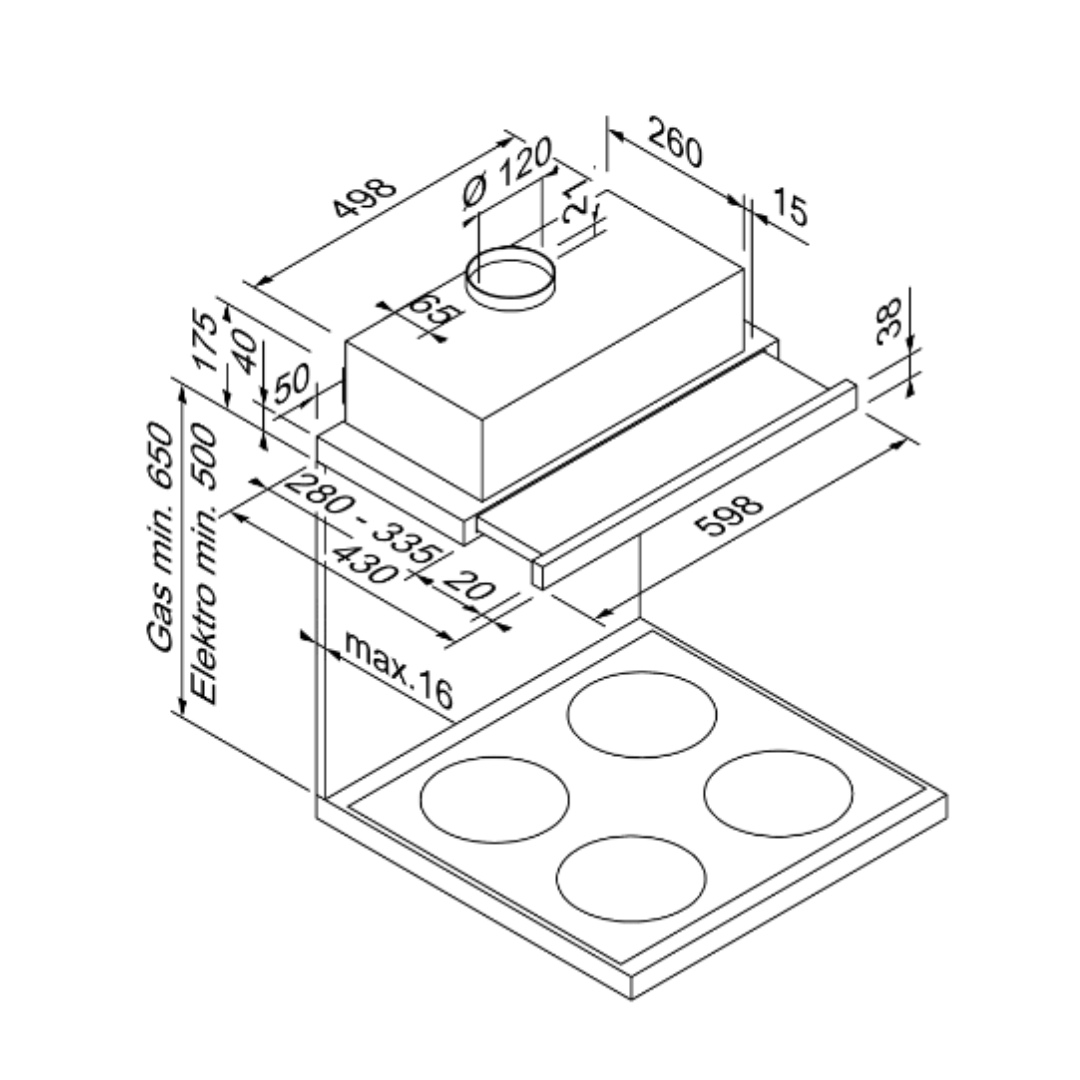 Blaupunkt By Hettich 5DA 36258 Flat Hood Wall Mounted Kitchen Chimney 60 cm, Stainless Steel