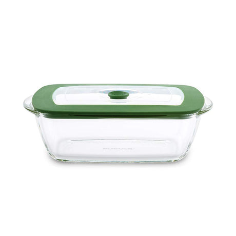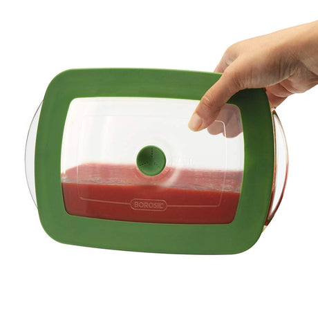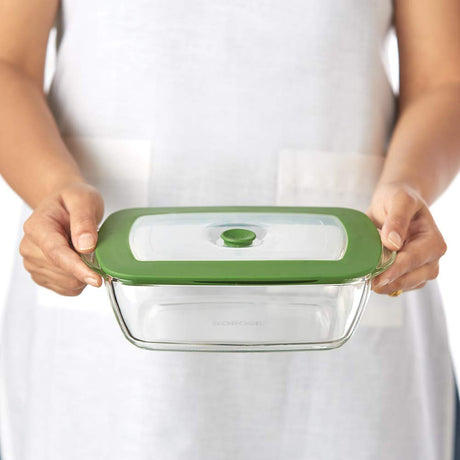 Borosil Rectangular Dish w Green Lid Oven, Micro, Fridge Safe 2.6L