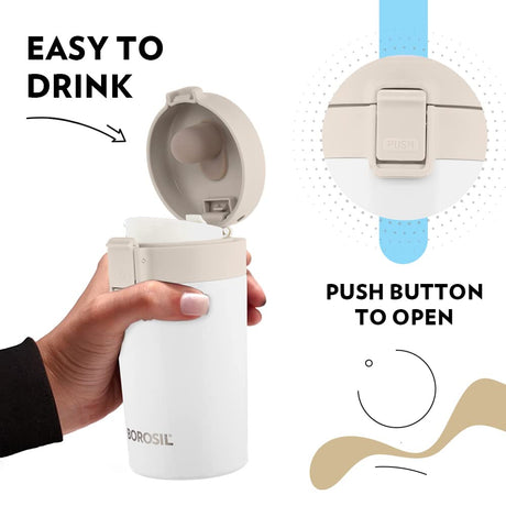 Coffeemate Insulated Mug 300ML White | Leakproof Travel Mug with Touch Lid | BT300WHE131