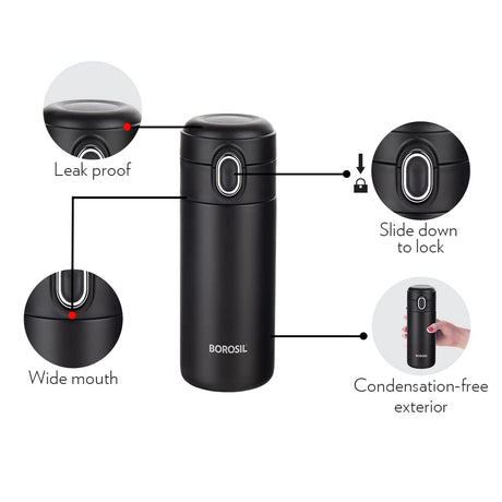 Traveller Mug 300ML Black | Hot and Cold Stainless Steel Bottle | BT300BLK126