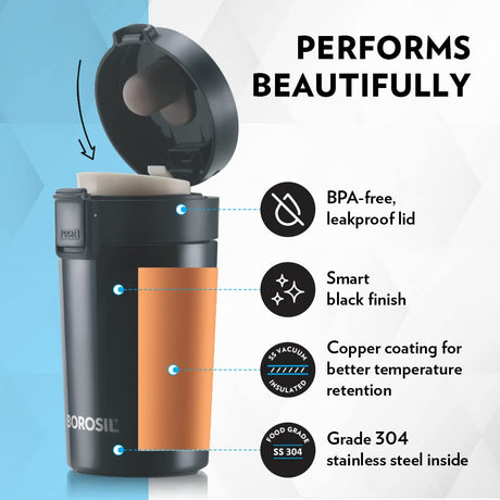 Borosil vacuum insulated stainless Steel travel mug (hot and cold ) - 300 ml