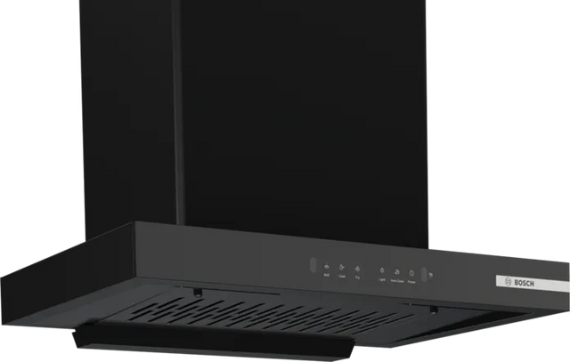 The Bosch Series 4 Wall-Mounted Cooker Hood DWB68IJ60I with a sleek inclined black glass design offers powerful ventilation and modern convenience for your kitchen. With a high extraction rate of 1200–1300 m³/h, it efficiently removes odors, fumes, and grease, ensuring a fresh cooking environment even during heavy cooking. The Touchless Control technology lets you operate the hood with simple hand gestures or traditional touch, while Auto Clean technology melts and collects grease into a removable oil collector for effortless maintenance. Three adjustable fan speeds allow precise control: Speed 1 for boiling, Speed 2 for standard cooking, and Speed 3 for frying or Tadka. Quiet operation (59–69 dB) and energy-efficient performance make this hood both functional and stylish.