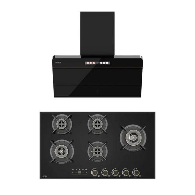 Hafele Combo Teresa Neo I-90 BLDC 90 cm Wall Mounted Chimney + Cronus Digi-Step 590 90 cm 5 Burner Hob