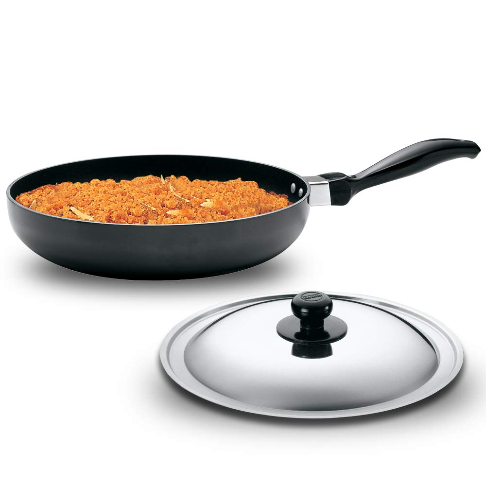 The round bottom pans are also eminently suitable for stir-frying. The breakfast pan (Appachatty) with a 0.9-litre capacity, round bottom, and two rosewood handles is ideal and western breakfast dishes.\