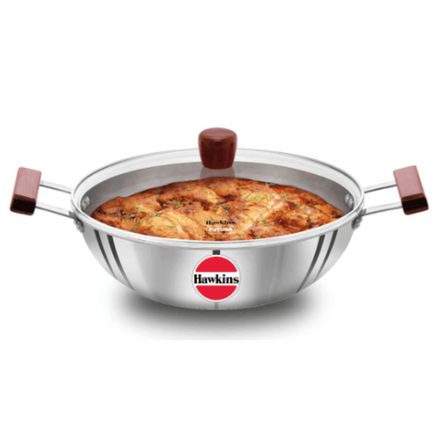 Hawkins 5 Litre Deep Kadhai, Triply Stainless Steel Kadai with Glass Lid Silver, SSK50G