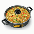 The 4.06 mm thick base and sides spread heat evenly and retain warmth for a long time making it an excellent utensil for both cooking and serving. It is offered with elegant Glass Lid
