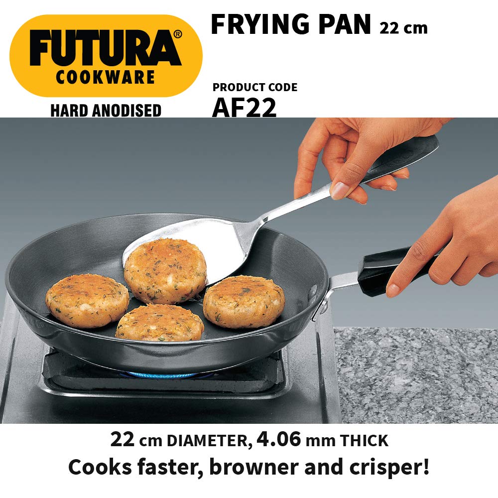 - Package Contents: 1-Piece Futura Hard Anodised Frying Pan (22cm/1.1 Litres)