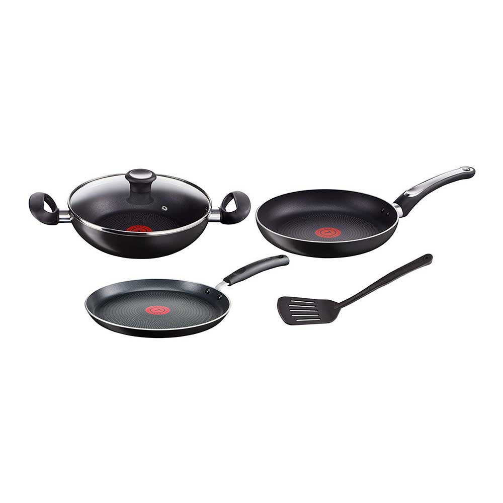 - Content : Kadhai 24cm, Tawa 26 cm, Fry Pan 24cm, Glass Lid and Complimentary Spatula