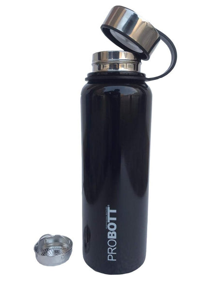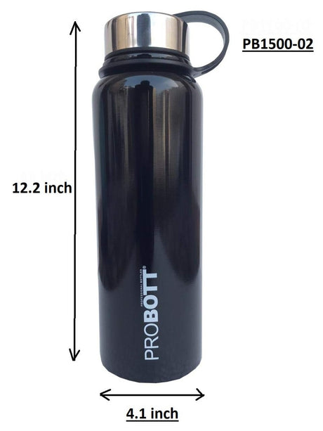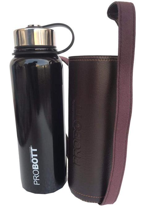 Probott 1500 ml Thermosteel Thermos Flask Water Bottle with Filter and Leather Cover Black-PB1500-02