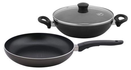 Nirlep Non Stick Fry Pan 24 Cm & Kadhai 24 Cm with Lid Set , 2.5 mm-IRGS 05