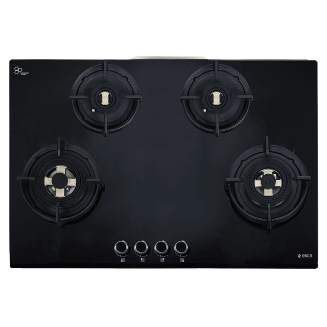 The flexi hob-top design comes with round metallic designer knobs that offer smooth control and a premium look. Fully sealed burner cups with vertical injectors prevent food spills from entering the internal components, making cleaning easier and enhancing safety. Supported by strong cast iron pan supports with heat guards, this hob provides excellent stability even for heavy utensils. With auto ignition powered by battery operation, the Elica FLEXI gas hob combines convenience, safety, and performance in a sleek 75 cm built-in format.