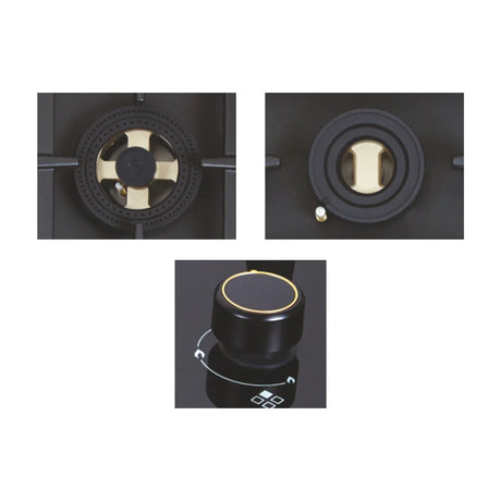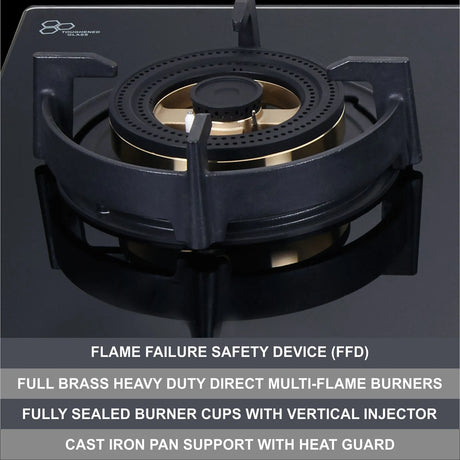 FLEXI HEXA 460 LOTUS IND HD 4 Brass Burners Toughened Glass, Auto Ignition Round Metalic knobs