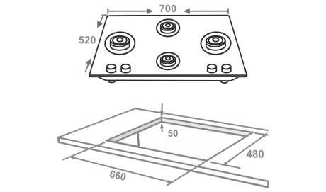 FLEXI DFS PRO AB 4B 70 DX Toughened Glass, Auto Ignition Fully Sealed 4 Burners