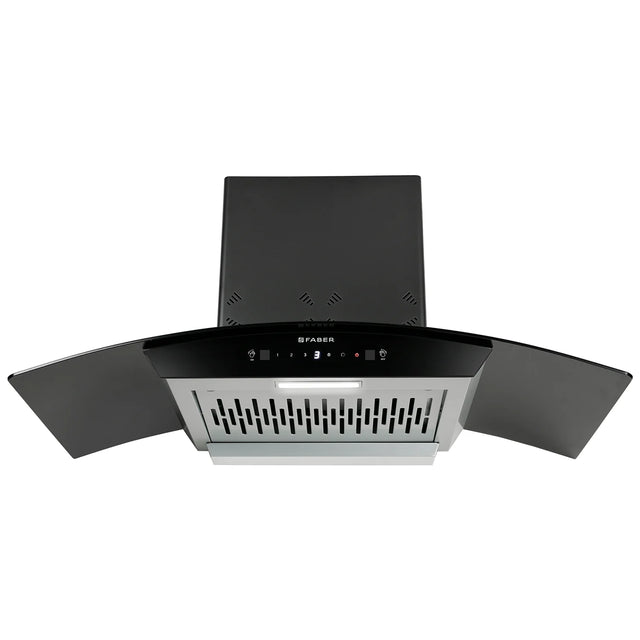 Its sleek black finish and central 1.5W soft LED light not only enhance kitchen aesthetics but also provide excellent visibility while cooking. Sized at 900x410x435 mm, this wall-mounted chimney is a perfect fit for modern Indian kitchens that require power, performance, and style.