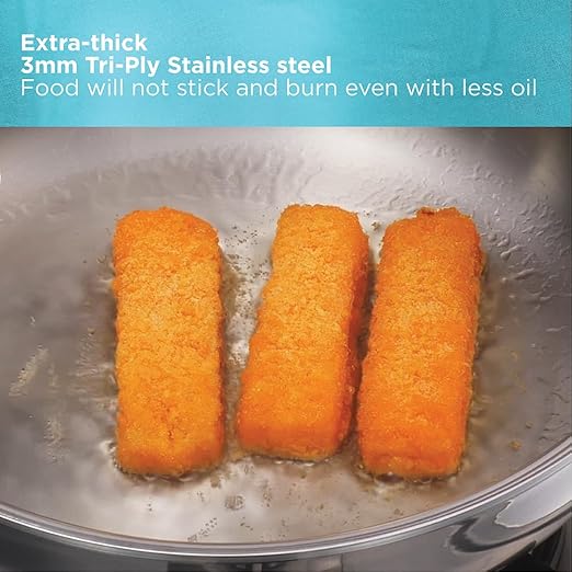 Hawkins Hawkins Pro 26 cm Frying Pan, Triply Stainless Steel Fry Pan with Stainless Steel Handle and Stainless Steel Lid, Silver (PSF26S)