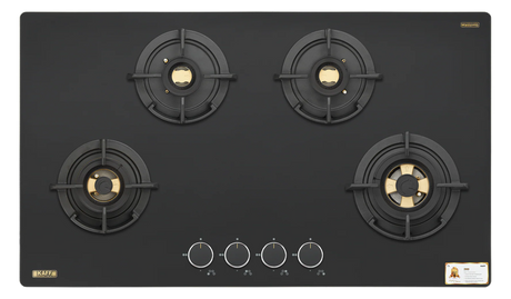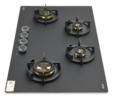 CBP 69 4B AI 69cm Cooktop – 4 Brass Burners with Black Coating, Auto Ignition, Black Tempered Glass