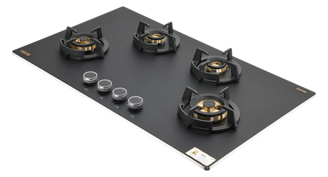 CTB584BAI – 4-Burner Auto Ignition Gas Stove | High-Efficiency Brass Burners | Black Tempered Glass