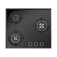 Hafele Altius FS 360 60 cm 3 Burner Hob – Brass Burners, Gunmetal Knobs, 538.66.631