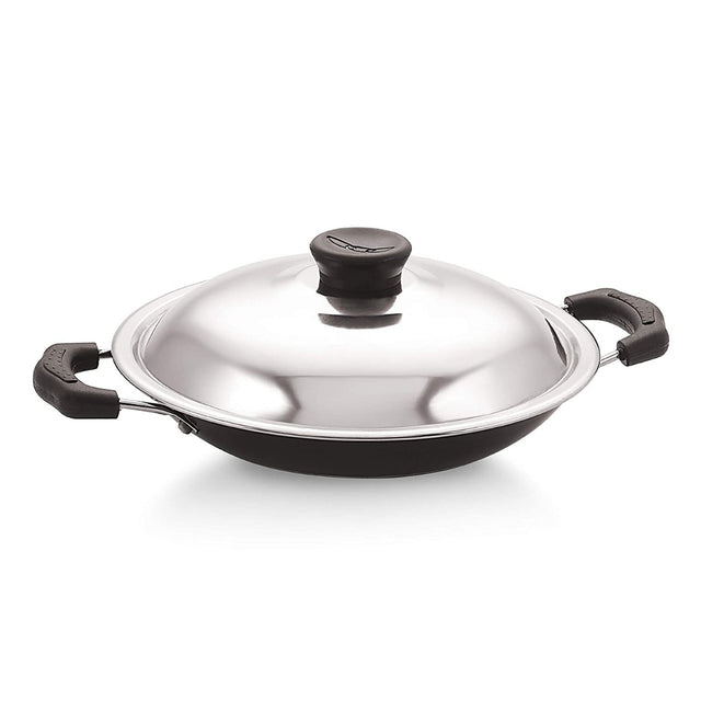 Anjali Anjali Non-Stick Appam Chetty with Stainless Steel Lid, (21cm)