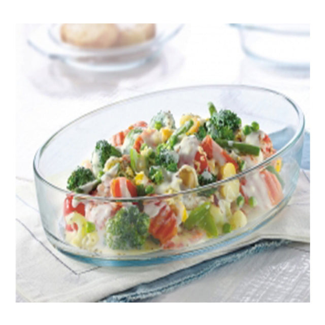 The oval dish is perfect for baked dishes, lasagnas, ravioli, au gratins, pulaos, sabzis, and items such as rasmalais, rasgullas, Gulab Jamun and dahibadas, which are best spread out flat.
