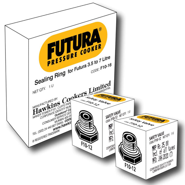 Hawkins Hawkins Futura Rubber Gasket for 4L- 7L Tall Pressure Cooker and Futura Safety Valve 2 Units