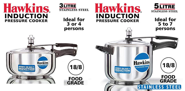 Hawkins Hawkins Stainless Steel Pressure Cooker 3 (Wide) and 5 litres, Set of 2