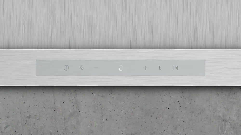 The powerful wall hood convinces with a high extraction rate and an outstanding design. ✓ iQdrive motor - The quiet, high-performance motor ensures efficient removal of odours and steam. ✓ LED light: Optimal visibility and atmosphere when cooking. ✓ The power level and the LED light can be selected directly touchControl ✓ Pleasantly quiet - motor. ✓ Intensive setting with automatic after revert setting
