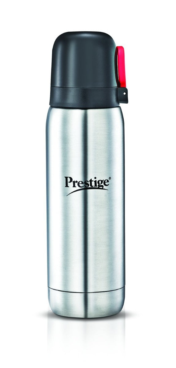 - Introducing The stylish and easy to carry prestige Thermopro vacuum flask. This superior Vacuum flask keeps liquid hot or cold flr hours so you don 檛 have to worry about reheating or re-cooling again. With features like spill-proof lid lock, wide mouth, etc The prestige thermopro flasks is a must-have accessory for any home or office.