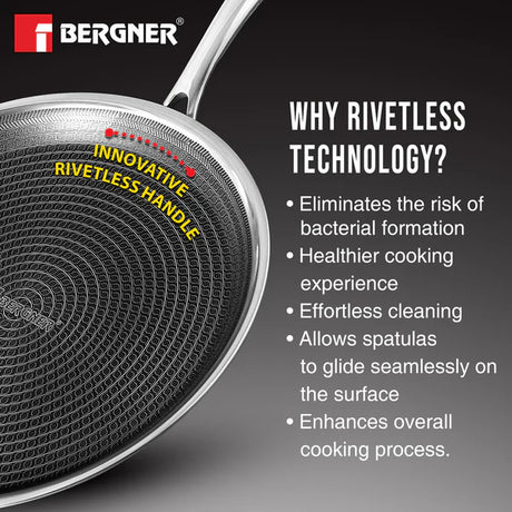 Bergner Argent Stainless Steel Kadai with Lid 32 Cm (BG-9951) Induction Base, Silver