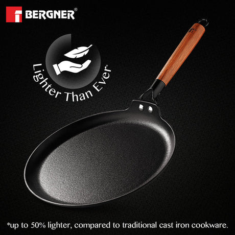Odin Lightweight Iron Dosa Tawa with Wooden Coated Handle – Induction Bottom BG-34436-BK