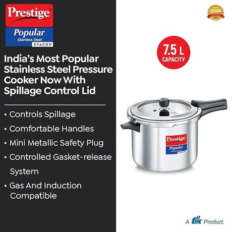 Prestige Popular Svachh Spillage Control SS Pressure Cooker 7.5L 20174
