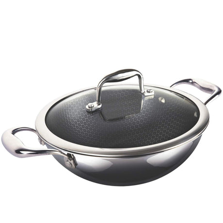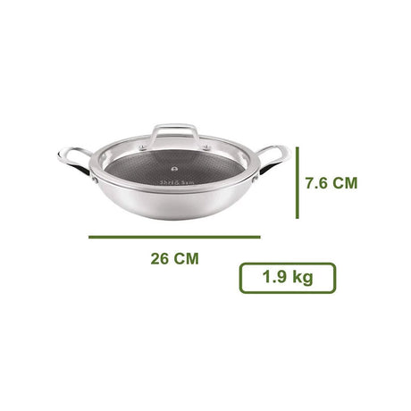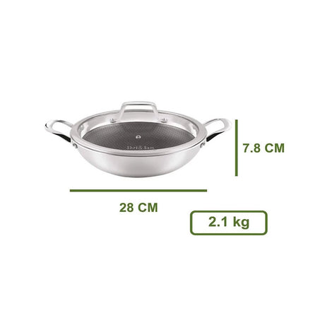 Alda Nero Tri-Ply Stainless Steel Non-Stick Wok Pan Kadhai 20 cm (1.7 LTR) with Glass Lid