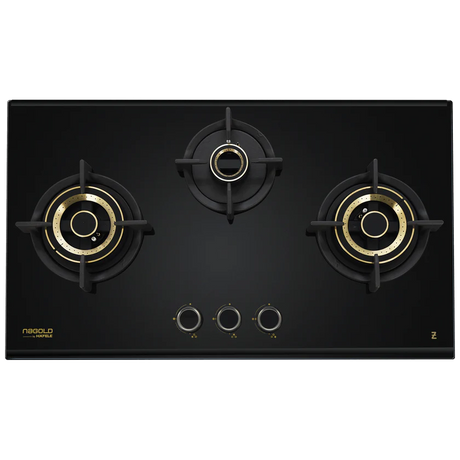 Zeta Plus 378 78 cm 3 Burner Hob – 6th Gen Brass Burners, Gunmetal Knobs, 538.41.504