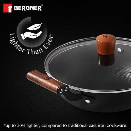 Odin Lightweight Iron Kadai with Glass Lid, Enamel Finish - Induction Bottom BG-34440-BK